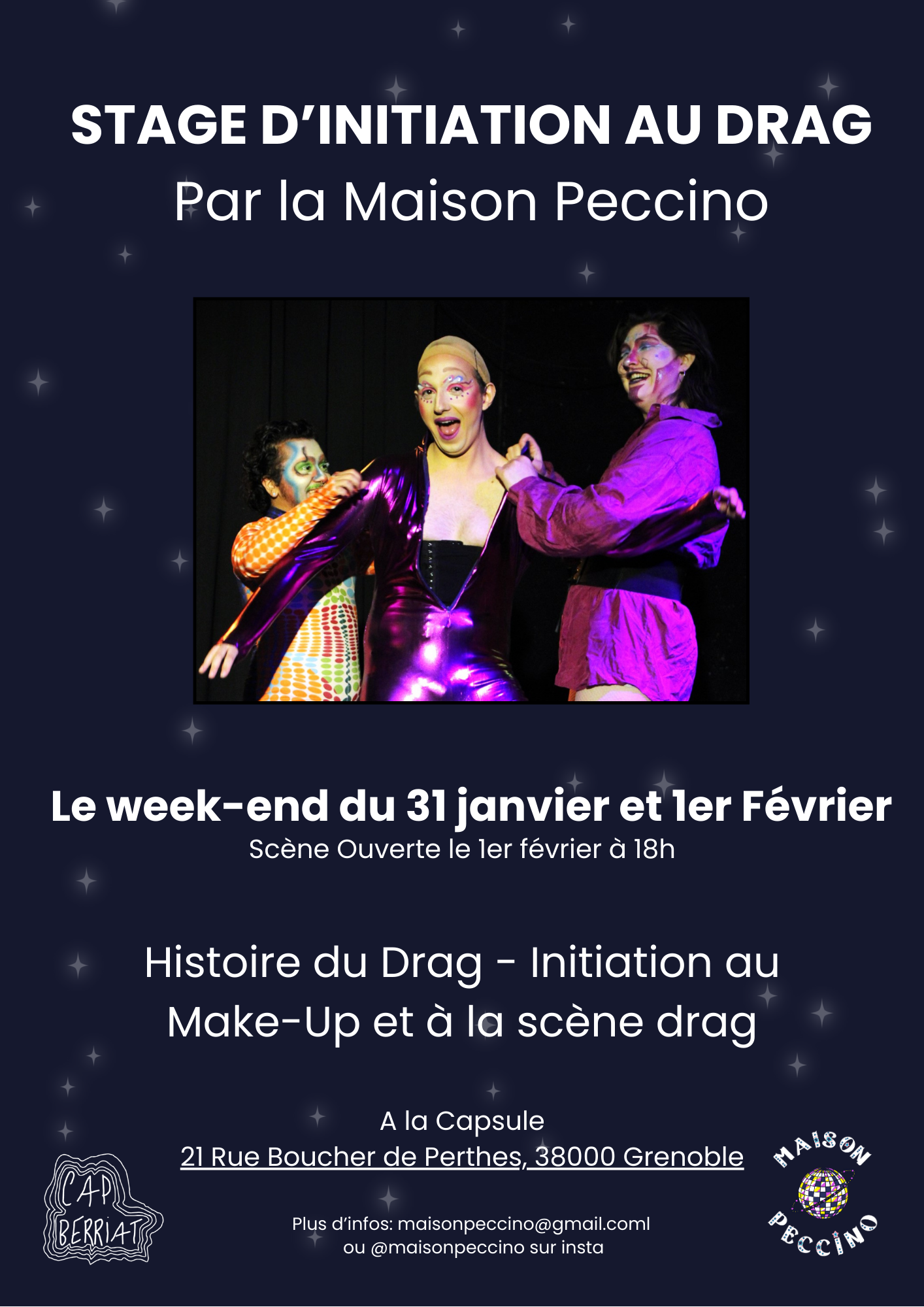 Ce week-end d'initiation au drag de la Maison Peccino se veut un espace inclusif où chacun pourra venir essayer cette pratique que la Maison Peccino aime partager sur scène, et cette fois ci avec vous !